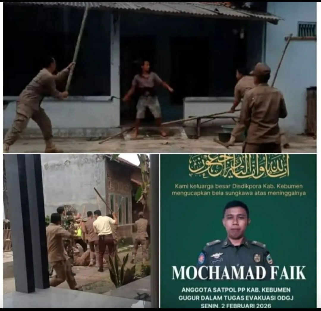 KEBUMEN, jurnalberita.co.id – Duka mendalam menyelimuti Korps Satuan Polisi Pamong Praja (Satpol PP) Kabupaten Kebumen. Seorang anggota berinisial MF dinyatakan gugur saat menjalankan tugas evakuasi Orang Dengan Gangguan Jiwa (ODGJ) di Desa Krakal, Kecamatan Alian, pada Senin (2/2/2026).