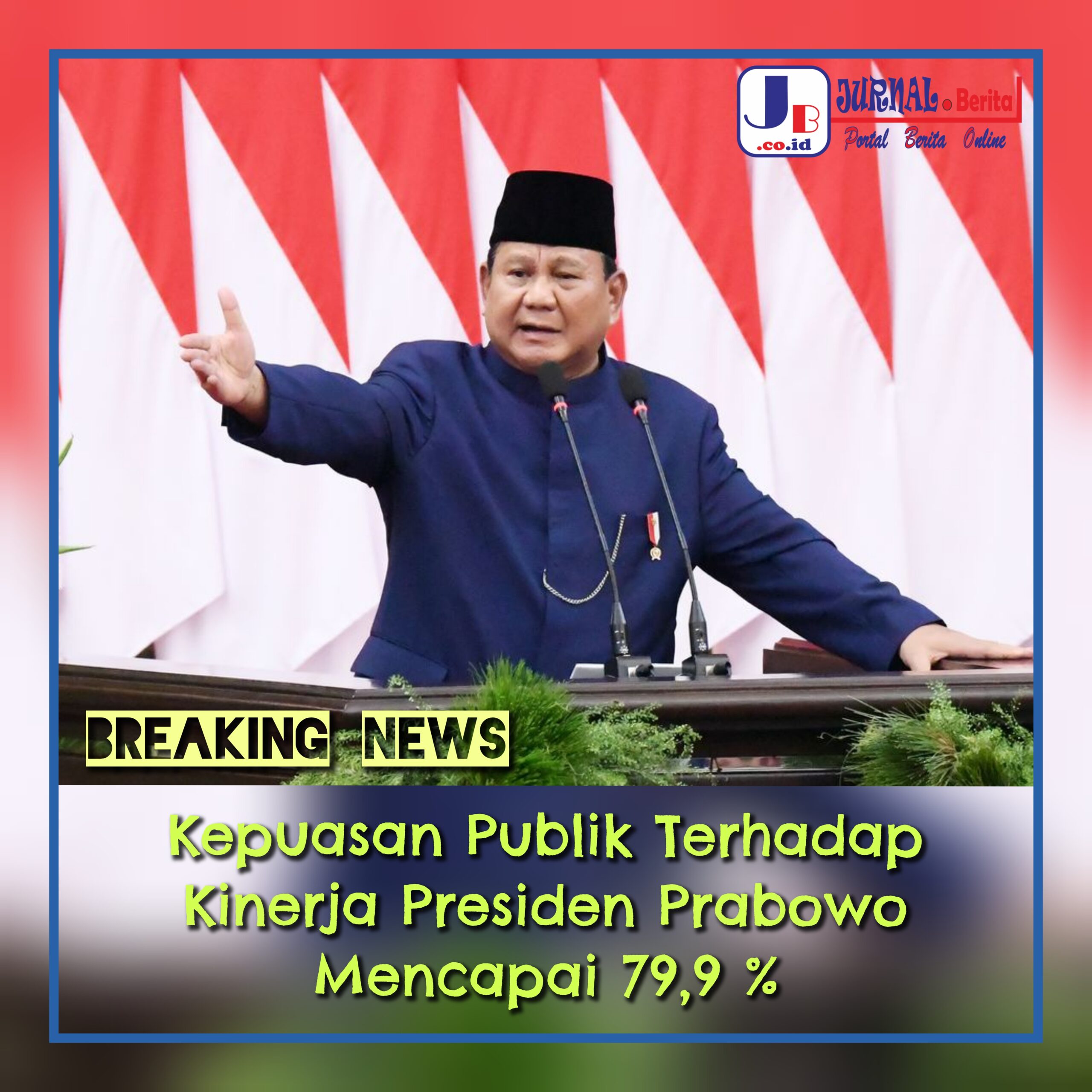 JAKARTA, jurnalberita.co.id – Tingkat kepuasan masyarakat terhadap kepemimpinan Presiden Prabowo Subianto mencatatkan angka yang sangat signifikan hingga menyentuh 79,9%, sebuah pencapaian yang memecahkan rekor dan melampaui angka awal masa jabatan dua pendahulunya, Presiden Susilo Bambang Yudhoyono (SBY) dan Presiden Joko Widodo (Jokowi).